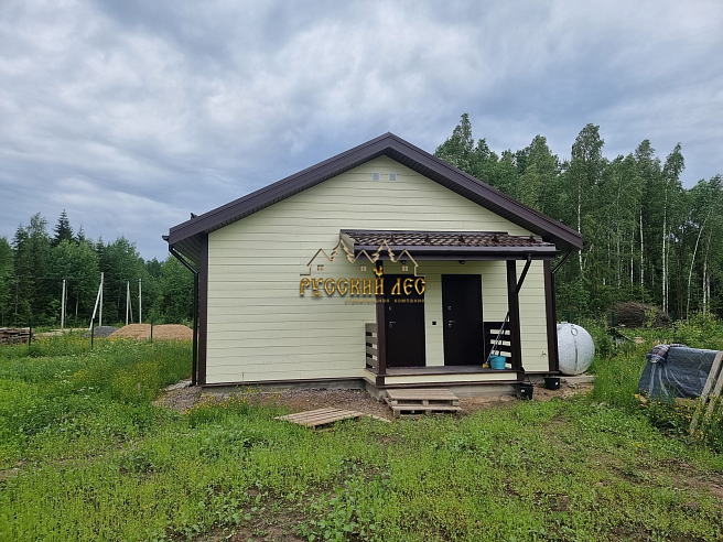 Дом общий размер 8,0х10,0м каркасный одноэтажный с террасой 1,5х3,0м под отдельной односкатной крышей. Высота первого этажа – 2,8м Высота конька – 2,0м. Крыша двускатная. |