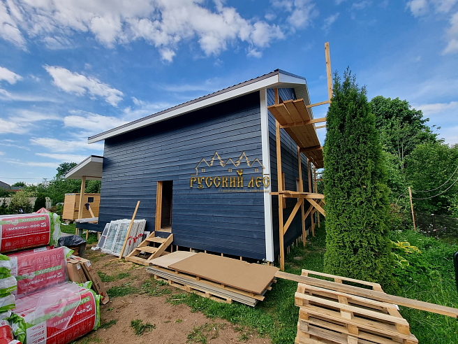 Внешняя отделка: Имитация бруса 20х196мм (Скандинавский профиль) + контробрешётка + плита Белтермо 20мм (шип-паз) |