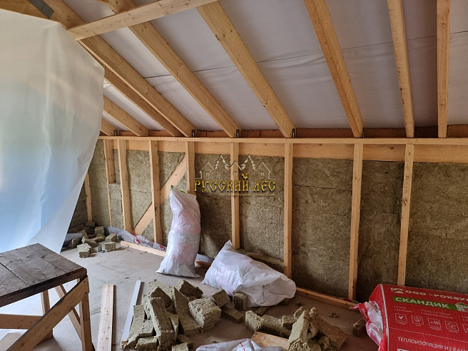 Внешняя отделка: Имитация бруса 20х145мм + контробрешётка + плита Белтермо 20мм (шип-паз) |