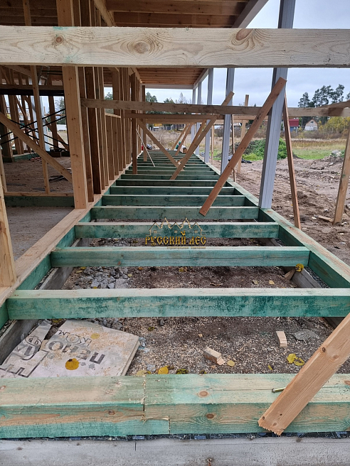 Антисептирование основания дома (обвязка, лаги) |