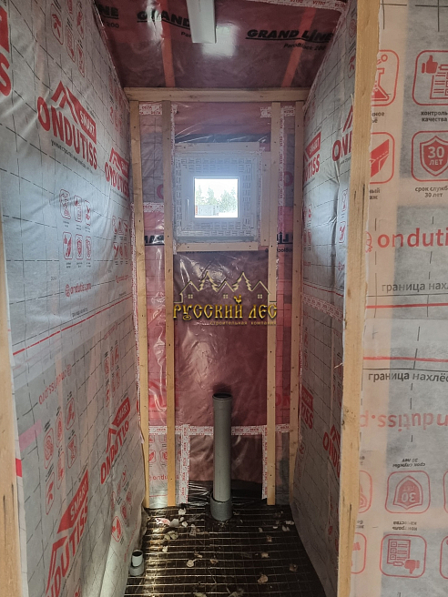Стены и перегородки - контробрешётка сухой строганный брусок 20х45мм (шаг 0,59м по стойкам); Потолок – контобрешётка сухой строганный брусок 20х45мм (шаг 0,4м). |