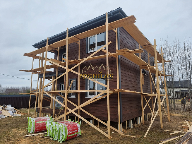 Стоимость дома с доставкой и сборкой на участке 6490000рублей. (с учётом фундамента ж/б сваи 30шт). |