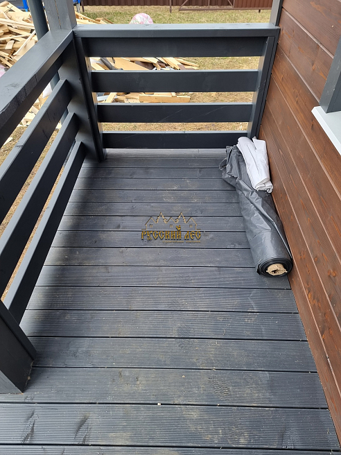 Полы – строганная доска 45х100мм с зазором, ограждение - строганная доска (параллельно в 3 ряда) 145*45мм, потолок – Сухая строганная доска 20мм с зазором. Делаем гидроизоляцию балкона. |