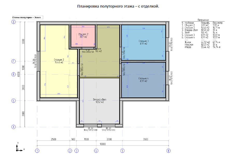 3,4м / поднятие стены полуторного этажа 1,5м |