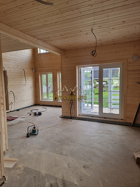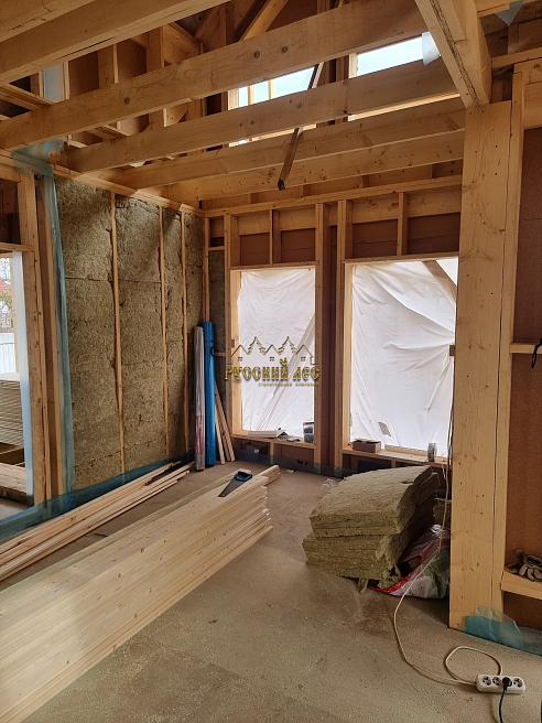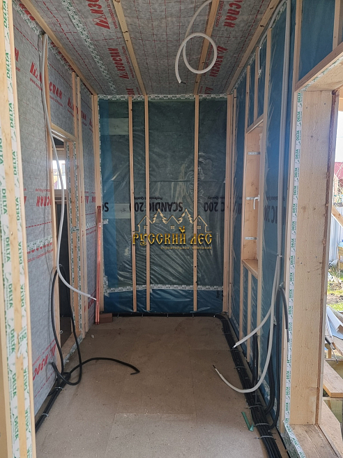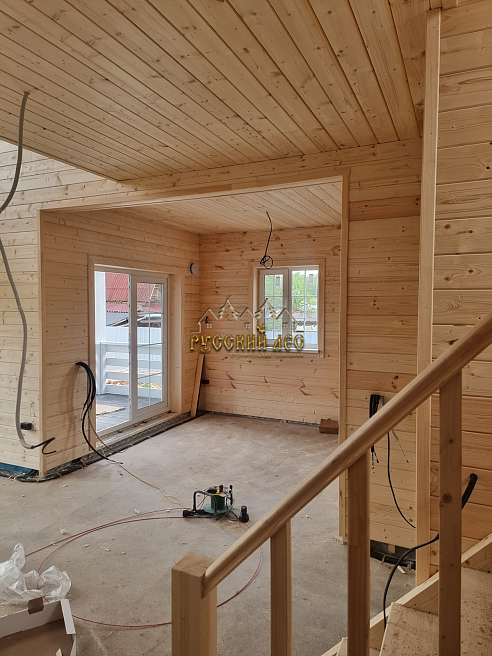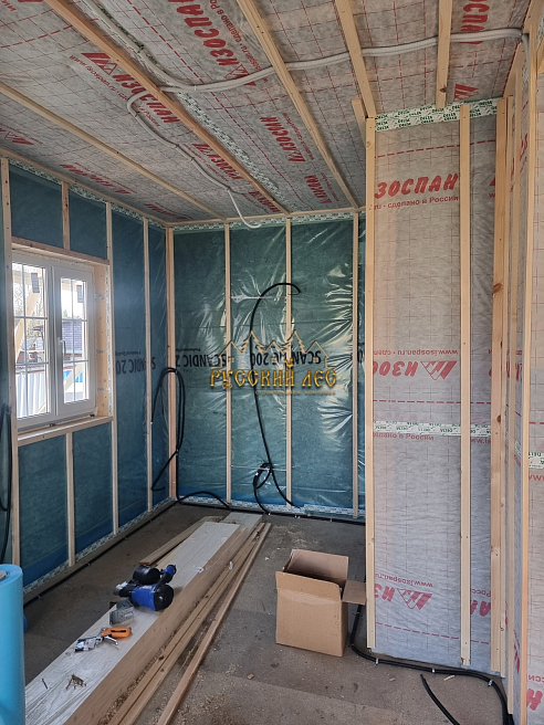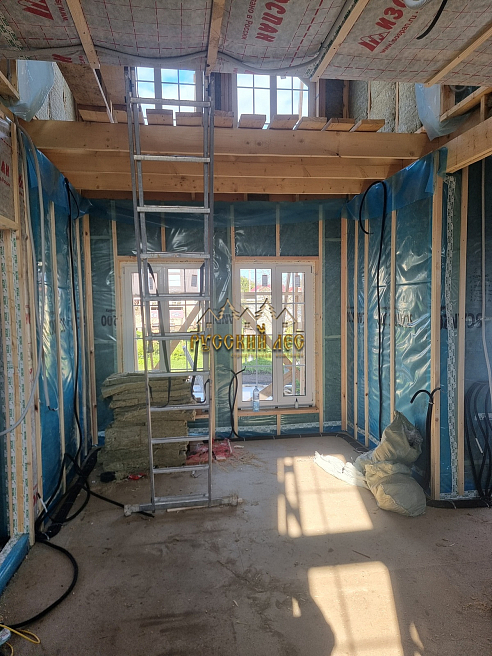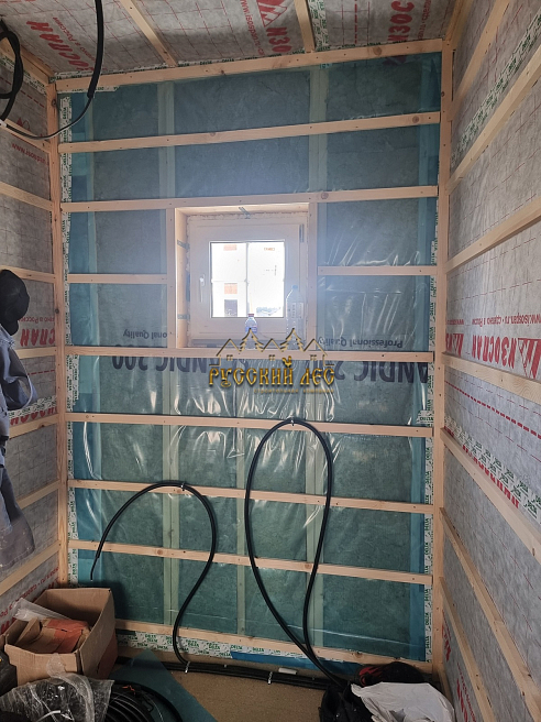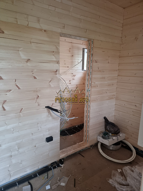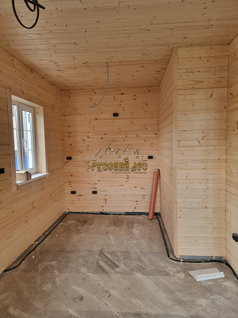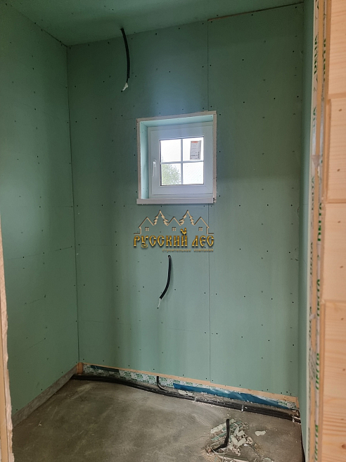 сухая имитация бруса 16х146мм + контробрешётка брусок 20х45мм (по стойкам); с/у и котельная - влагостойкий гипрок по деревянным направляющим |