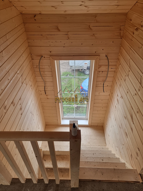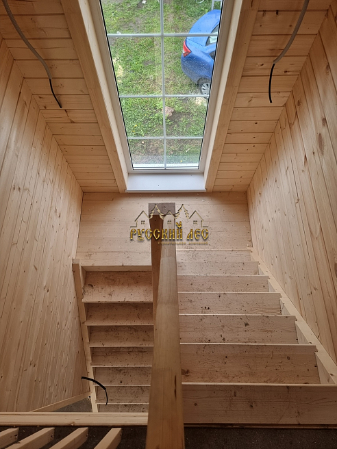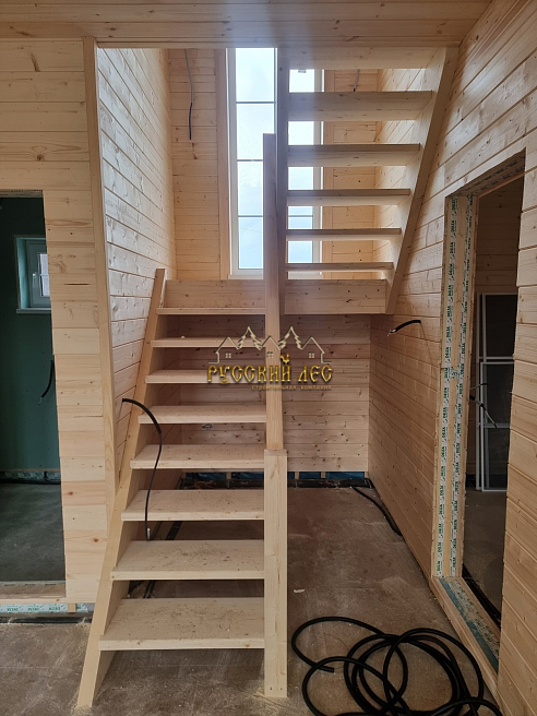 Закрытая, деревянная двухмаршевая с перилами, балясинами, клееными тетивами |