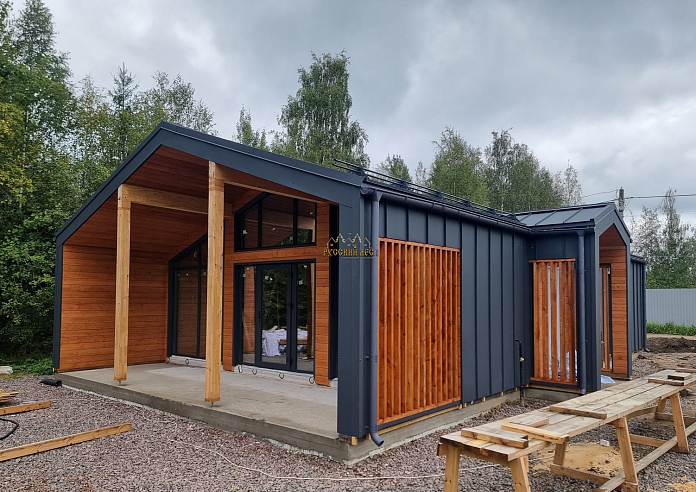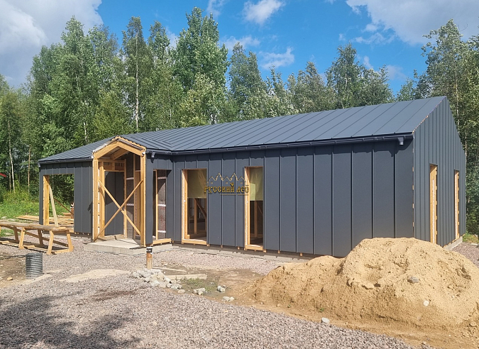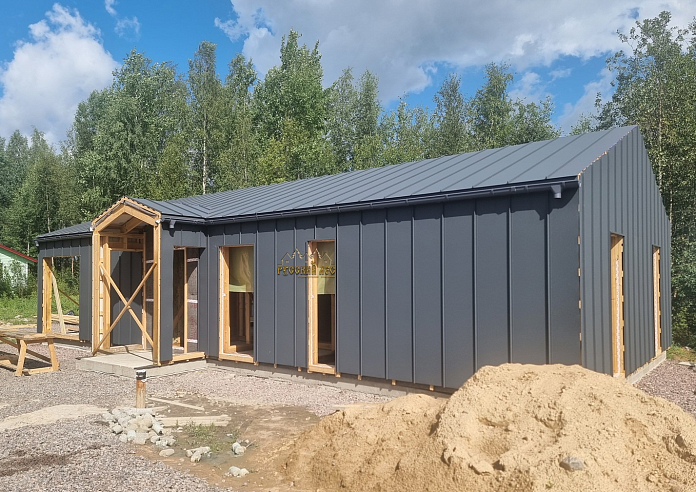 Одноэтажный дом БАРН габаритами 14,3 х 7,8м, по проекту Д-192. Теплый Контур. |