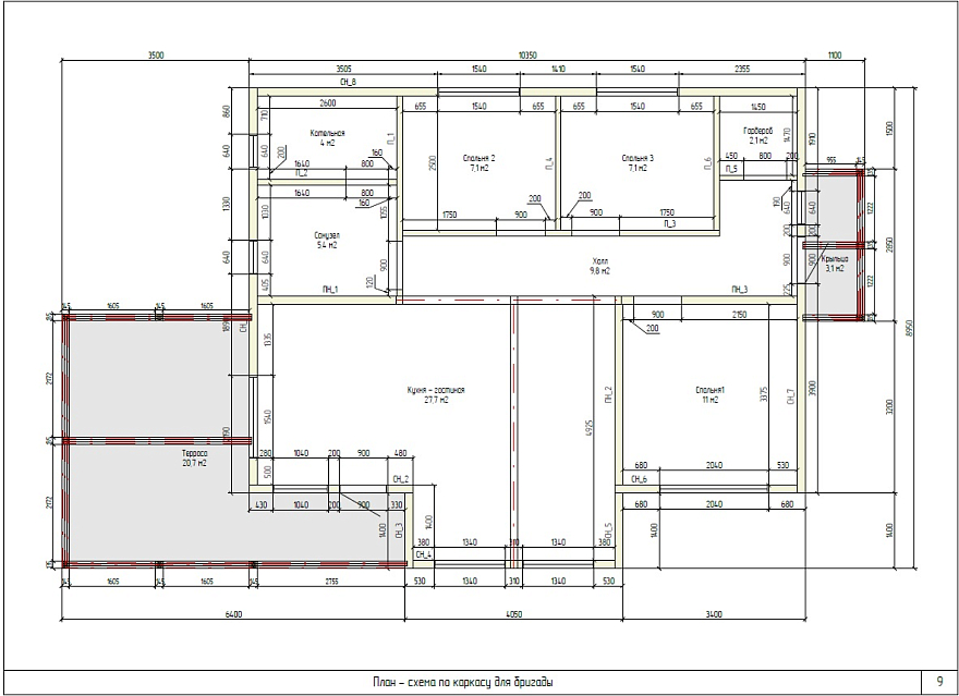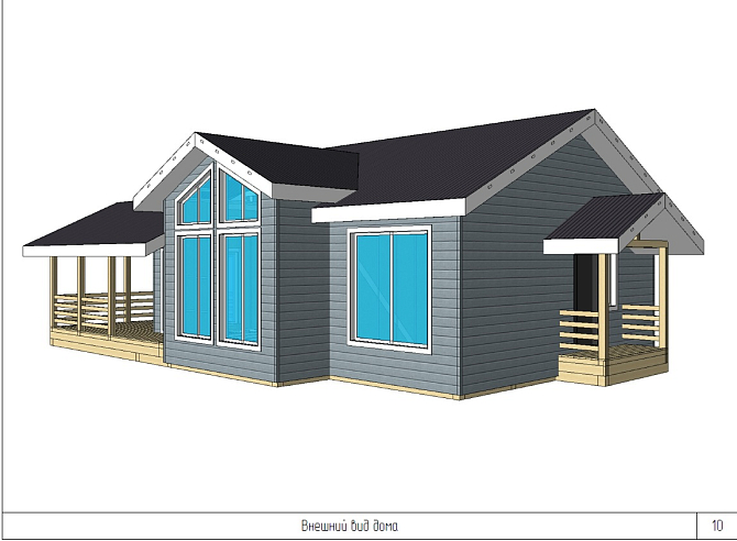 Одноэтажный каркасный дом 15000 х 9000 мм с террасой и крыльцом, по индивидуальному проекту |