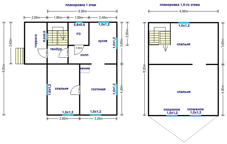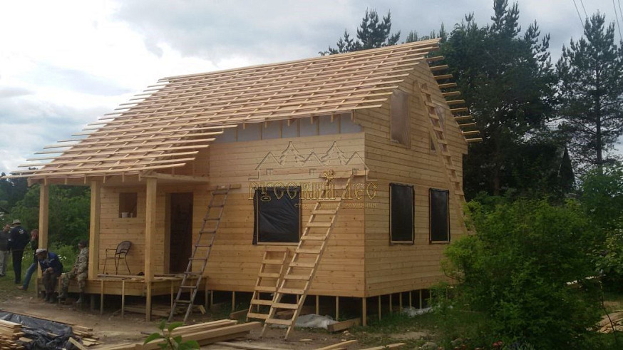 Начато строительство каркасного дома по проекту Д-146 размер 6,0х8,0м в полтора этажа с террасой 2,0х3,6м под отдельной односкатной крышей.