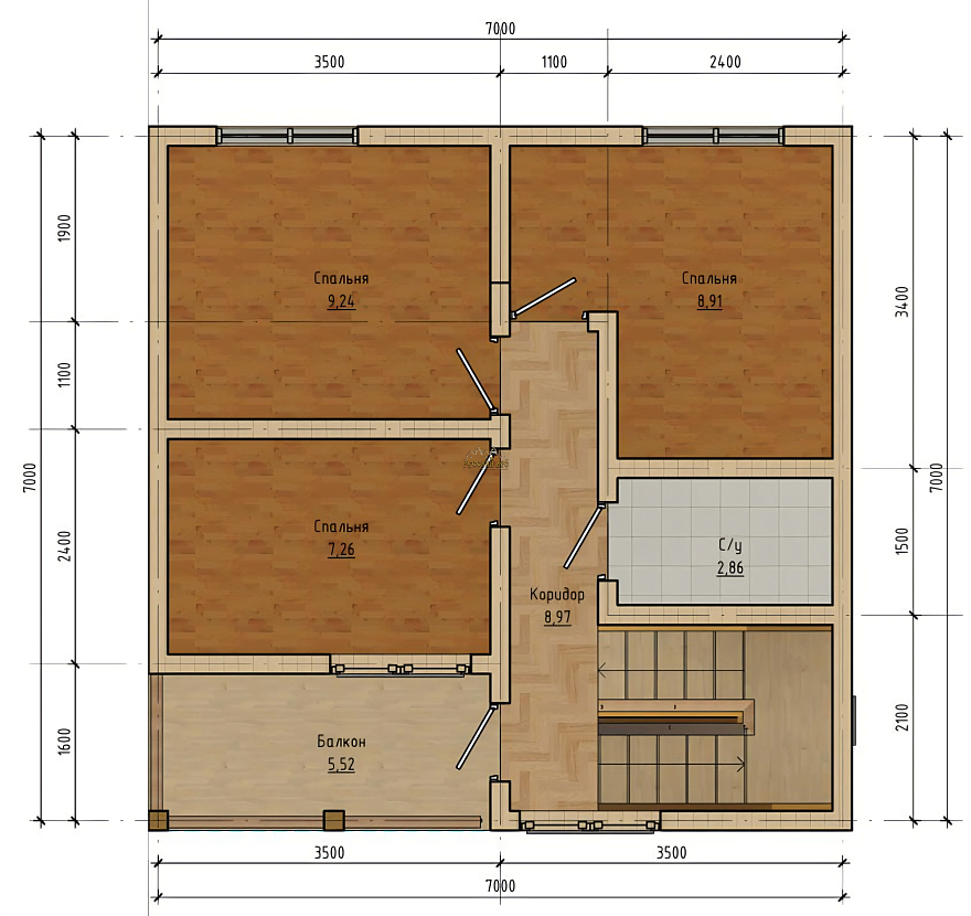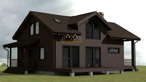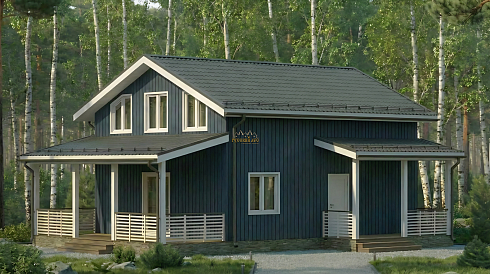 Каркасные коттеджи с мансардой особенно популярны у тех, кто ценит функциональность и уют. Мансардный этаж позволяет увеличить полезную площадь без расширения фундамента, а терраса добавляет каркасному дому архитектурной выразительности. В каркасных проектах часто предусматривают панорамные окна и продуманную внешнюю отделку — от классической имитации бруса до фасадных панелей под штукатурку.